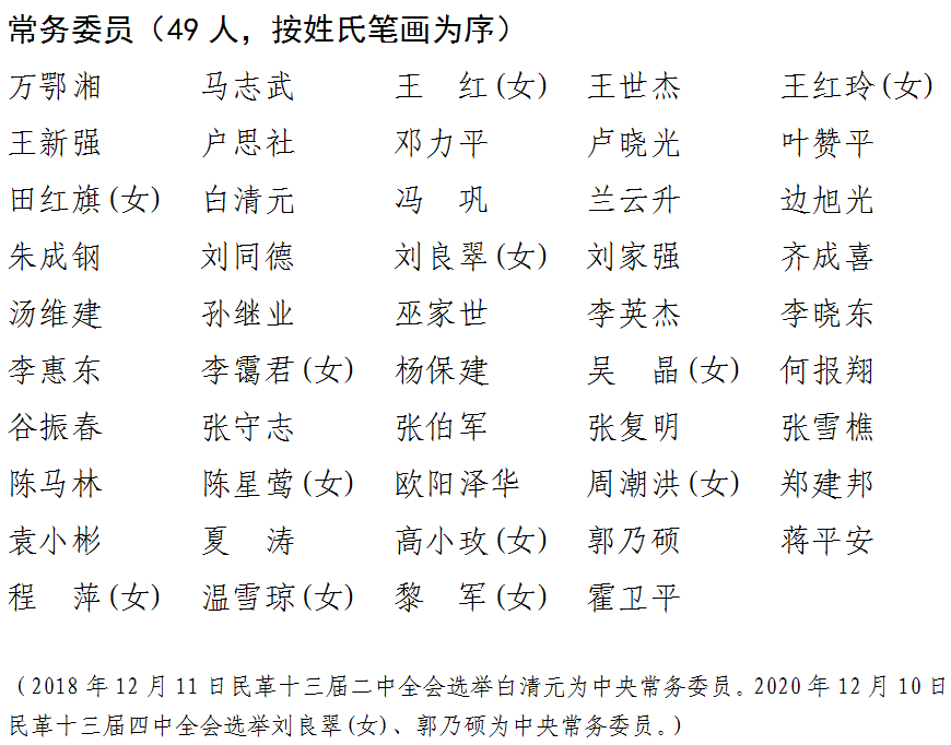 民革第十二屆中央委員會常務(wù)委員名單(51人,按姓氏筆畫為序)