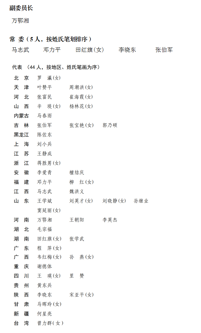 民革黨員當選第十三屆全國人大常委會副委員長、委員,代表名單