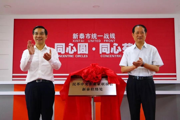 李惠東和劉欽海一同為民革中央企業(yè)家聯(lián)誼會(huì)新泰聯(lián)絡(luò)處揭牌