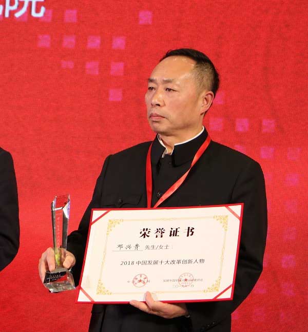 當(dāng)晚,以“講好發(fā)展故事 唱響中國聲音”為主題的2018(第四屆)“發(fā)展中國”年度人物盛典舉行。鄧興貴獲得“2018中國發(fā)展十大改革創(chuàng)新人物”。