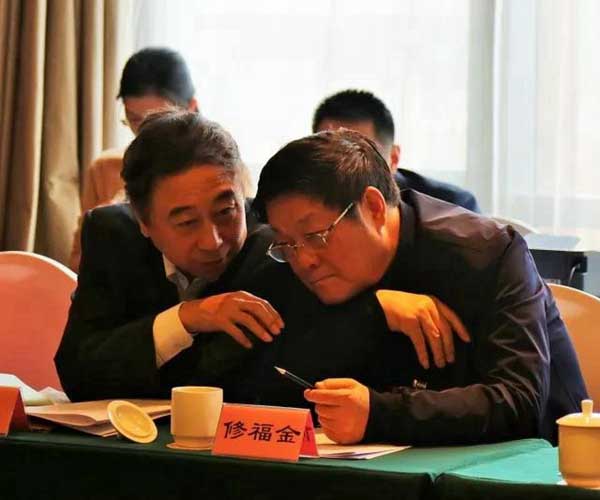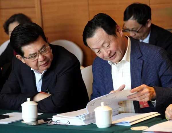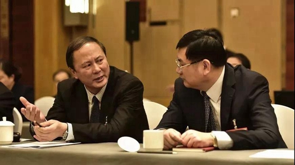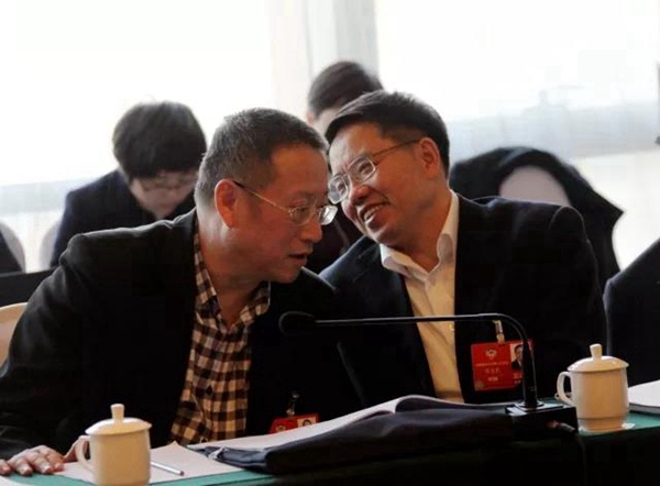 3月5日下午,傅惠民委員(右)在民革小組討論會(huì)上與鄭建邦委員交流。
