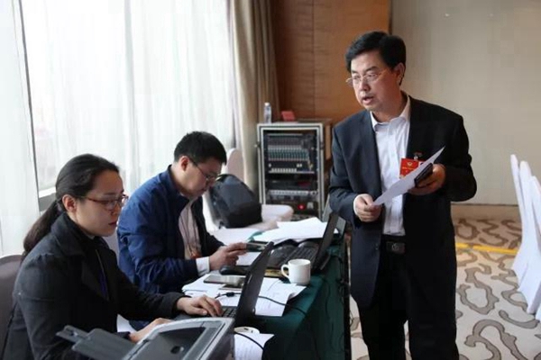 3月5日下午,民革小組討論結(jié)束后,陳德委員與工作人員交流。