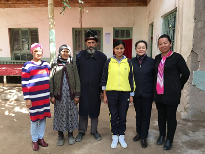 烏魯木齊離阿克蘇足有1000多公里路程,“認(rèn)親”之路迢迢。坐了一夜的火車,再經(jīng)過幾個(gè)小時(shí)的汽車顛簸,張曉平一行終于抵達(dá)了柯坪縣阿拉瑪村。在這里,她見到了自己的親戚——布吾沙熱木·買買提明。