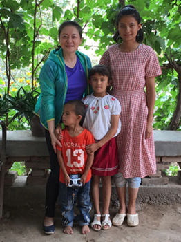 張曉平(左一)同瑪依熱及她的弟弟妹妹合影