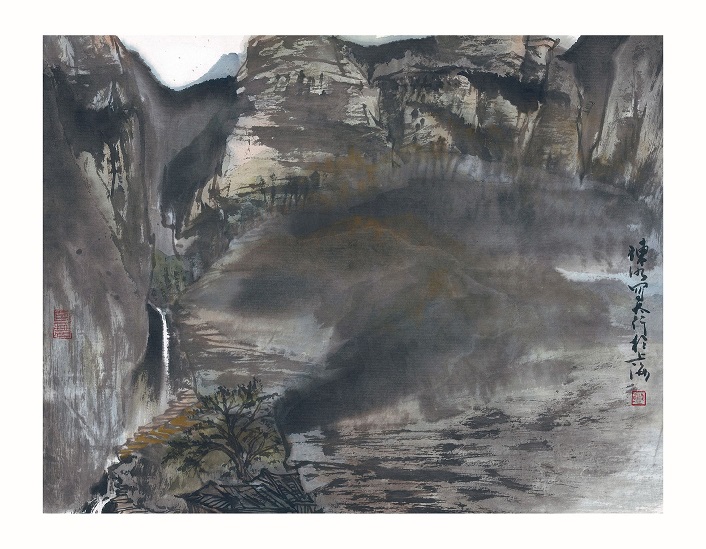 陳明 國畫 《寫祖詠詩意’終南望余雪‘》
