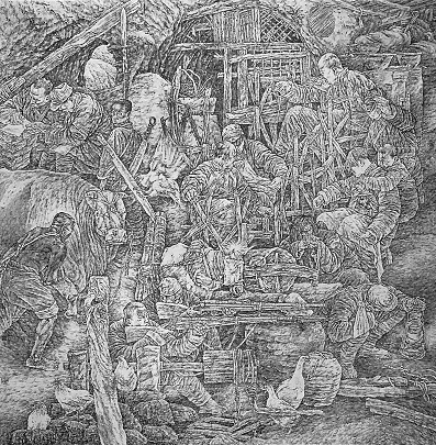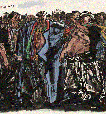 于長江 陳嶸 錢宗飛 吳濤毅 《民兵史畫長卷》 國畫 246cm×243cm 1999年