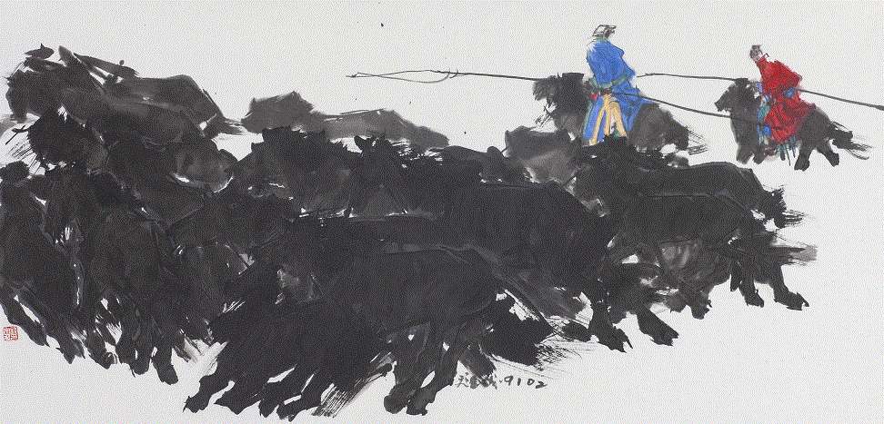 錢宗飛 《草原有約》 國畫 178cm×180cm 2009年