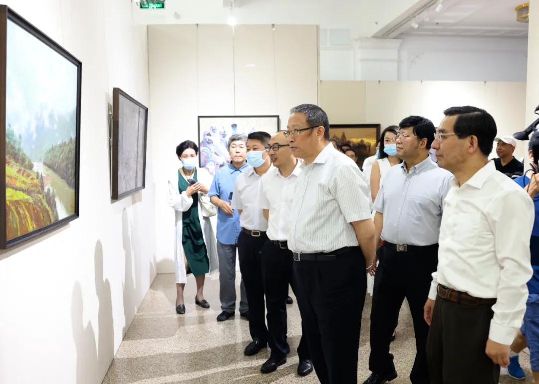 此次展覽展出作品近240件,涵蓋書法、中國畫、油畫、水彩、版畫、漆畫等多個藝術(shù)種類。作品堅持“以人民為中心”的創(chuàng)作導(dǎo)向,緊緊圍繞慶祝中國共產(chǎn)黨成立100周年這一主題,聚焦中華民族偉大復(fù)興中國夢,謳歌中國共產(chǎn)黨、謳歌祖國、謳歌人民,唱響愛國主義主旋律,用筆墨為時代畫像、為時代立傳、為時代明德,展現(xiàn)了中國人民在中國共產(chǎn)黨的領(lǐng)導(dǎo)下為實現(xiàn)中華民族偉大復(fù)興而不懈奮斗的中國故事和中國精神。展覽從7月9日持續(xù)到7月13日。