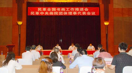 2020年6月17日,民革全國書畫工作推進會暨民革中央畫院團體理事代表會議在重慶召開。民革中央副主席兼秘書長李惠東,重慶市政協(xié)副主席、民革重慶市委會主委王新強出席會議,中共重慶市委統(tǒng)戰(zhàn)部有關(guān)負責(zé)人應(yīng)邀到會。會議由民革中央社會服務(wù)部副部長、民革中央畫院秘書長張長宏主持。民革各省級組織書畫工作處室負責(zé)人、民革中央畫院團體理事代表參加會議。