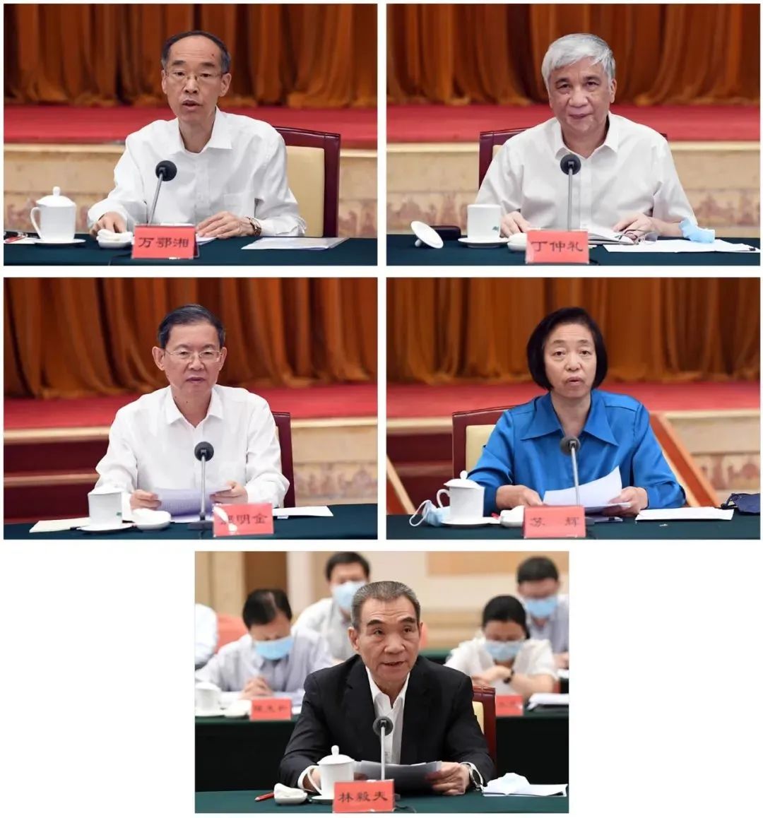 民革中央主席萬鄂湘、民盟中央主席丁仲禮、民建中央主席郝明金、臺盟中央主席蘇輝、無黨派人士代表林毅夫在座談會上介紹調(diào)研成果。