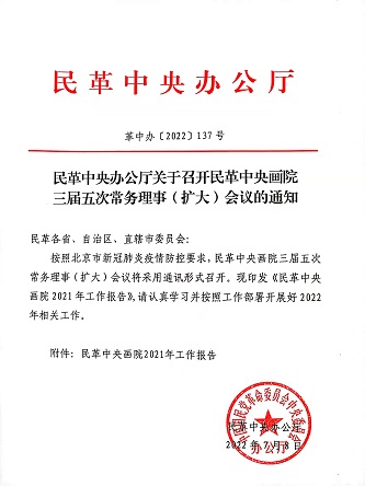 7月上旬,民革中央畫院三屆五次常務理事(擴大)會議采用通訊形式召開。會議印發(fā)了《民革中央畫院2021年工作報告》,要求認真學習并按照工作部署開展好2022年相關工作。