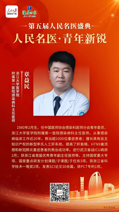 8月16日晚,由人民日?qǐng)?bào)健康客戶端、健康時(shí)報(bào)主辦的第五屆人民名醫(yī)盛典將在人民日?qǐng)?bào)健康客戶端演播廳舉行,來(lái)自全國(guó)117個(gè)學(xué)科(含亞學(xué)科或重大疾病組)的296名優(yōu)秀醫(yī)生代表入選第五屆人民名醫(yī)系列榜單。浙江民革黨員、浙江大學(xué)醫(yī)學(xué)院附屬第一醫(yī)院感染病科主任醫(yī)師章益民躋身“人民名醫(yī)?青年新銳”榜。