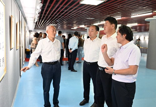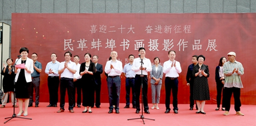 2022年9月20日,“喜迎二十大,奮進新征程”民革蚌埠書畫攝影作品展在蚌埠市圖書館開幕。民革安徽省委會專職副主委王安義,民革蚌埠市委會主委周景飛出席開幕式。中共蚌埠市委統(tǒng)戰(zhàn)部副部長柴啟明應(yīng)邀出席并致辭。