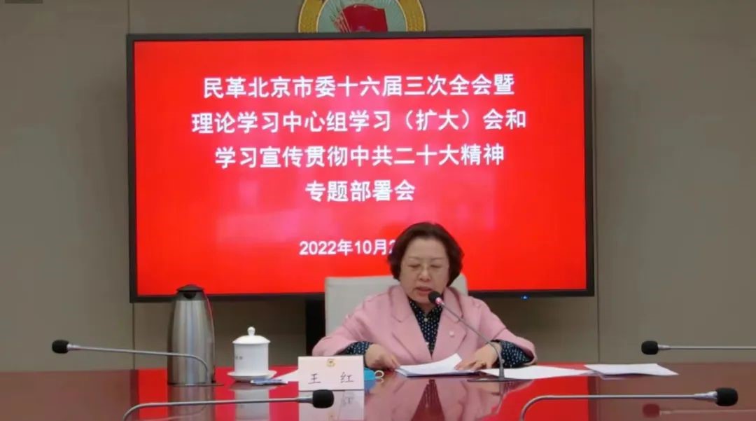 王紅就民革北京各級(jí)組織和廣大民革黨員學(xué)習(xí)宣傳貫徹中共二十大精神提出明確要求:一要深刻認(rèn)識(shí)中共二十大的重大意義,把深入學(xué)習(xí)宣傳貫徹中共二十大精神作為民革北京市委會(huì)當(dāng)前和今后一個(gè)時(shí)期首要的政治任務(wù)。二是迅速掀起學(xué)習(xí)宣傳貫徹中共二十大精神熱潮,通過(guò)學(xué)原文悟原理、開(kāi)展宣講和培訓(xùn)、組織理論研究闡釋、舉辦各類學(xué)習(xí)活動(dòng)等多種形式,使中共二十大精神深入到各級(jí)組織、深入到每個(gè)黨員,實(shí)現(xiàn)全覆蓋。三是將學(xué)習(xí)宣傳貫徹二十大精神成果轉(zhuǎn)化為強(qiáng)化自身建設(shè)和做好參政履職的強(qiáng)大動(dòng)力和實(shí)際成效。要完成好全年目標(biāo)任務(wù),確保圓滿收官;要結(jié)合學(xué)習(xí)二十大精神,謀劃好明年工作;要深入開(kāi)展調(diào)查研究,全面提升履職本領(lǐng);要嚴(yán)明政治紀(jì)律和政治規(guī)矩,不斷提高政治判斷力、政治領(lǐng)悟力、政治執(zhí)行力。