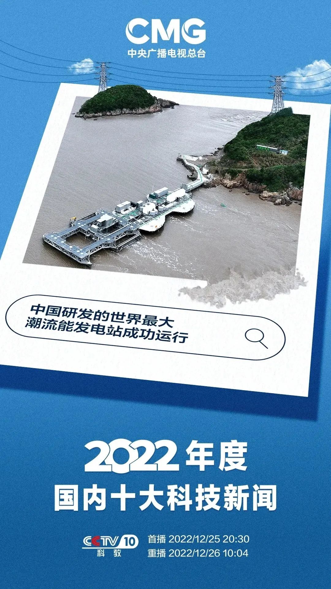 12月23日,中央廣播電視總臺(tái)發(fā)布2022年度國內(nèi)、國際十大科技新聞,由浙江民革黨員林東帶領(lǐng)團(tuán)隊(duì)自主研發(fā)的LHD潮流能發(fā)電項(xiàng)目——“中國研發(fā)的世界最大潮流能發(fā)電站成功運(yùn)行”入選2022年度中國十大科技新聞。