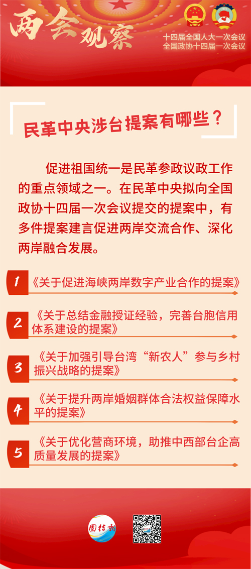 圍繞助推中西部臺(tái)企高質(zhì)量發(fā)展建言、為促進(jìn)兩岸數(shù)字產(chǎn)業(yè)合作支招、建議完善臺(tái)胞信用體系建設(shè)……在民革中央擬向全國(guó)政協(xié)十四屆一次會(huì)議提交的提案中,有多件提案建言促進(jìn)兩岸交流合作、深化兩岸融合發(fā)展?! ?/p>