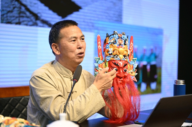 2023年新春時(shí)節(jié),在安順市西秀區(qū)劉官鄉(xiāng)周官村祠堂前,屯堡地戲表演隊(duì)員首蒙青巾,腰圍戰(zhàn)裙,額戴臉譜(俗稱“臉子”),手執(zhí)刀槍,擊鼓敲鑼,隨口而唱,應(yīng)聲而舞,引來了觀眾的陣陣掌聲。這些表演者戴的臉譜,有許多都出于民革黨員、貴州省政協(xié)委員、安順臉子儺雕文化藝術(shù)有限公司總經(jīng)理秦發(fā)忠之手。現(xiàn)年51歲的秦發(fā)忠從事儺戲面具雕刻已有37年,從學(xué)習(xí)儺雕技藝到建立儺雕博物館,再到推動(dòng)屯堡文化與旅游業(yè)融合發(fā)展,秦發(fā)忠演繹著一個(gè)個(gè)精彩的人生故事。