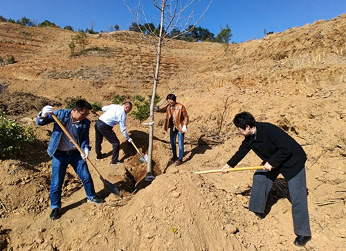 明媚的春光中,機(jī)關(guān)干部們擼起袖子揮鍬鏟土、扶正樹苗、培土灑水……大家揮灑汗水,種下了一棵棵銀杏、油茶,為光禿禿的山坡增添了一抹抹新綠,以實(shí)際行動踐行“綠水青山就是金山銀山”的理念,也為美化村居環(huán)境貢獻(xiàn)了一份力量。