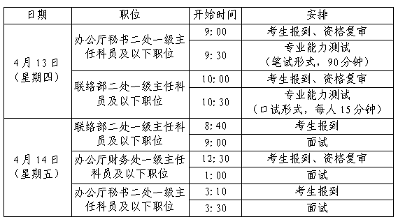 1.面試和專業(yè)能力測(cè)試于2023年4月13日至14日進(jìn)行,具體安排如下: