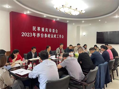會議學(xué)習(xí)了習(xí)近平總書記全國兩會期間重要講話精神和全國兩會精神、中共二十屆二中全會精神、民革十四大精神。傳達(dá)學(xué)習(xí)了民革重慶市委會2023年參政議政工作會議精神,通報了市委會2023年1-4月涉臺參政議政工作情況,研究部署了市委會2023年“4+1”涉臺參政議政系列工作。與會人員還就涉臺課題調(diào)研、涉臺提案及涉臺社情民意信息等深入交流和分組討論。