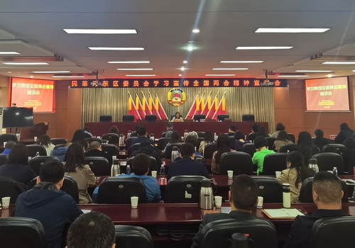 4月21日,民革天津河?xùn)|區(qū)委會召開學(xué)習(xí)貫徹全國兩會精神宣講會議。民革天津市委會專職副主委王紅梅出席會議并作全國兩會精神宣講。區(qū)委會主委張大勇主持會議,區(qū)委會委員、支部委員及黨員代表參加學(xué)習(xí)。