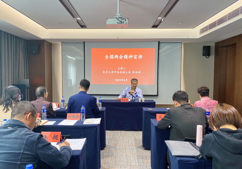 4月26日,民革天津市委會副主委耿延候為民革天津津南區(qū)工委黨員作全國兩會精神宣講。區(qū)工委主委王斌主持會議。