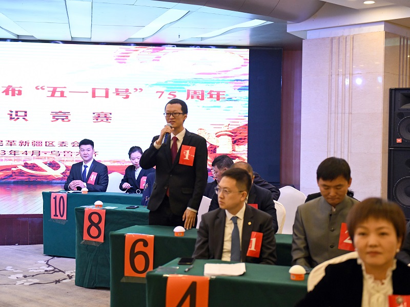 4月27日,民革新疆區(qū)委會在烏魯木齊舉辦紀念中共中央發(fā)布“五一口號”75周年知識競賽,民革新疆區(qū)委會主委宋亞君出席活動并講話,民革新疆區(qū)委會專職副主委孫霞、副主委陳全家參加活動。自治區(qū)黨委統(tǒng)戰(zhàn)部黨派處處長吳南寬、民盟新疆區(qū)委會副主委尤江斌、民進新疆區(qū)委會副主委洪春華、農(nóng)工黨新疆區(qū)委會副主委江啟新、九三學社副主委肖虎等領導到場祝賀。民革全區(qū)5個市委會、區(qū)直8個支部經(jīng)過初賽初選,共選派了10支代表隊或聯(lián)合代表隊參加區(qū)委會組織的知識競賽。