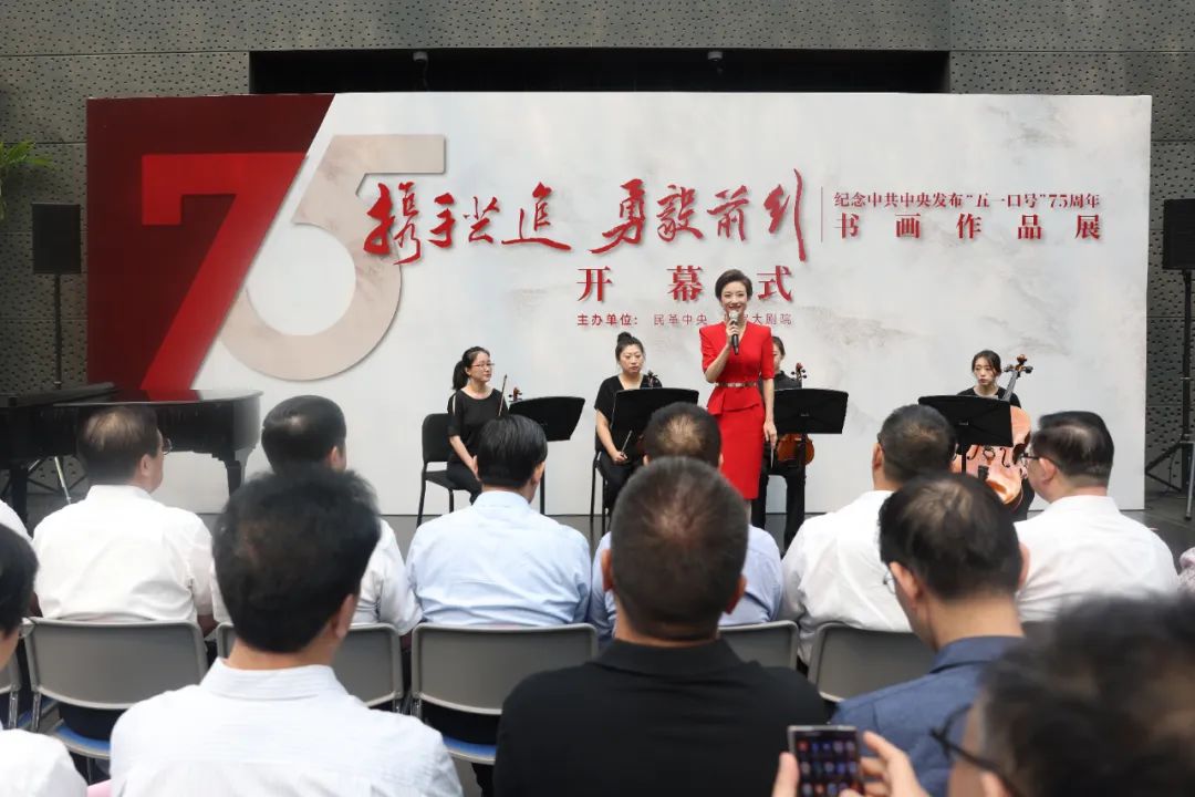 6月25日,由民革中央和國(guó)家大劇院共同主辦的“攜手共進(jìn) 勇毅前行——紀(jì)念中共中央發(fā)布‘五一口號(hào)’75周年書畫作品展”開幕式在國(guó)家大劇院舉行。全國(guó)人大常委會(huì)副委員長(zhǎng)、民革中央主席鄭建邦宣布展覽開幕。國(guó)家大劇院黨組書記、院長(zhǎng)王寧,民革中央副主席劉家強(qiáng)、李惠東、王紅、谷振春,中國(guó)美協(xié)副主席徐里,國(guó)家博物館副館長(zhǎng)劉萬(wàn)鳴,中國(guó)美術(shù)館副館長(zhǎng)潘義奎等出席開幕式。國(guó)家大劇院副院長(zhǎng)戈大立、民革中央畫院院長(zhǎng)孔維克分別講話。