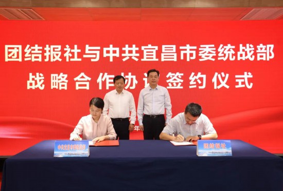 團結(jié)報社總編輯助理、專題部主任邵宏華代表團結(jié)報社致辭。活動中,團結(jié)報社與中共宜昌市委統(tǒng)戰(zhàn)部簽署戰(zhàn)略合作協(xié)議,并進行團結(jié)報多媒體閱報屏進駐宜昌市委統(tǒng)戰(zhàn)部揭幕儀式。劉家強為團結(jié)報記者“長江生態(tài)環(huán)境保護團結(jié)行”團隊授旗。