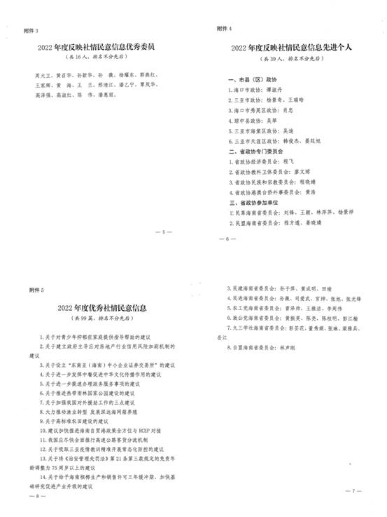 近日,海南省政協(xié)印發(fā)《海南省政協(xié)2022年度反映社情民意信息工作的表?yè)P(yáng)通報(bào)》,民革海南省委會(huì)反映社情民意信息工作成績(jī)斐然: