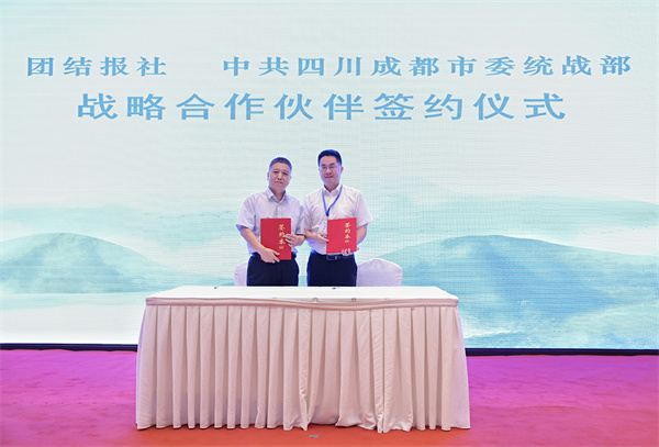 活動中,團(tuán)結(jié)報社副社長劉華與中共成都市委統(tǒng)戰(zhàn)部副部長張吉廣簽署戰(zhàn)略合作協(xié)議;播放了團(tuán)結(jié)讀書會展播視頻;湖北宜昌市委統(tǒng)戰(zhàn)部四級調(diào)研員孫永華、民革上海市奉賢區(qū)委會副主委李政遠(yuǎn)、民革濟(jì)南市委會秘書長倪秀珍,分別分享了舉辦團(tuán)結(jié)讀書活動的經(jīng)驗心得。民革成都市委會通過播放自導(dǎo)自演“成都民革邀您共讀經(jīng)典”微電影、開展現(xiàn)場互動等形式,給大家?guī)砹艘粓鼍始姵实难莩觥?/p>