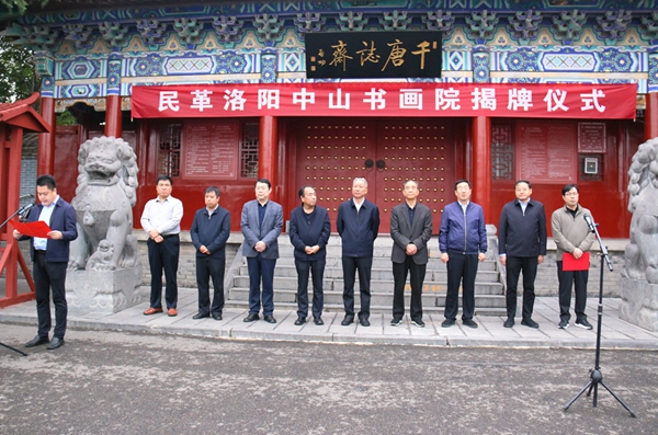 10月19日上午,民革洛陽(yáng)中山書畫院在民革黨史教育基地——張鈁故居舉行揭牌儀式,民革河南省委會(huì)主委、河南省糧食和物資儲(chǔ)備局局長(zhǎng)張弓,河南省書法家協(xié)會(huì)主席、民革河南中山書畫院院長(zhǎng)吳行,洛陽(yáng)市政協(xié)副主席、民革洛陽(yáng)市委會(huì)主委程相朝,民革洛陽(yáng)市委會(huì)副主委、洛陽(yáng)市文聯(lián)副主席、民革洛陽(yáng)中山書畫院院長(zhǎng)、千唐志齋博物館館長(zhǎng)陳花容,民革洛陽(yáng)市委會(huì)專職副主委張毅出席儀式。