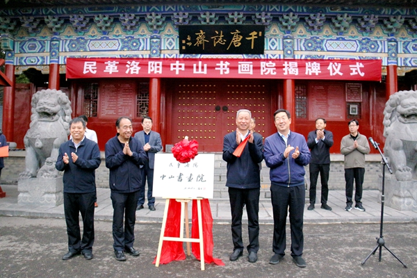 儀式上,劉軍鋒代表中共新安縣委致歡迎辭,陳花容介紹民革洛陽(yáng)中山書畫院基本情況,張弓、吳行、程相朝、劉軍鋒為民革洛陽(yáng)中山書畫院揭牌。