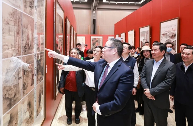 孔維克在致辭中介紹,為著力提升展覽總體水平,展覽籌備期間還舉辦了主題創(chuàng)作草圖觀摩指導(dǎo)活動(dòng)。此次展覽共征集作品1500余件,經(jīng)過專業(yè)評(píng)審后最終精選出約270件優(yōu)秀作品參展,涵蓋中國畫、油畫、書法、篆刻、瓷板畫等多個(gè)藝術(shù)門類。這些作品集中體現(xiàn)了多黨合作史和民革發(fā)展史,弘揚(yáng)了中華優(yōu)秀傳統(tǒng)文化的價(jià)值理念和時(shí)代精神,從多角度多層面描繪了中國式現(xiàn)代化的恢宏氣象,謳歌了中國共產(chǎn)黨帶領(lǐng)中國人民開辟中華民族偉大復(fù)興之路的光輝歷程。