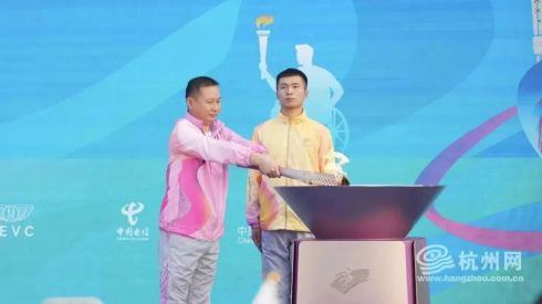 尹世強(qiáng)擔(dān)任亞殘運(yùn)會(huì)火炬?zhèn)鬟f富陽站最后一棒火炬手