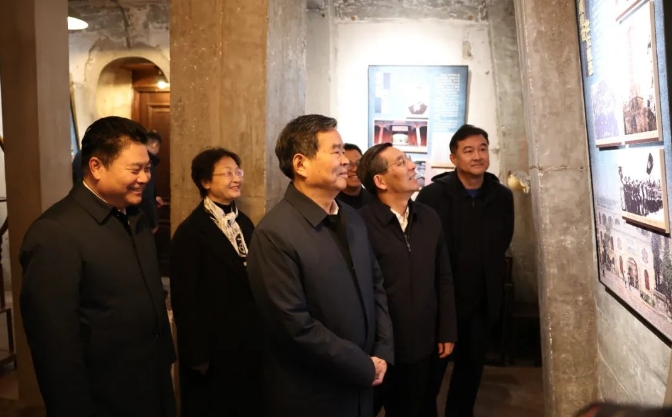 揭牌儀式后,何報翔一行參觀了民主人士北上登陸地史料陳列室。