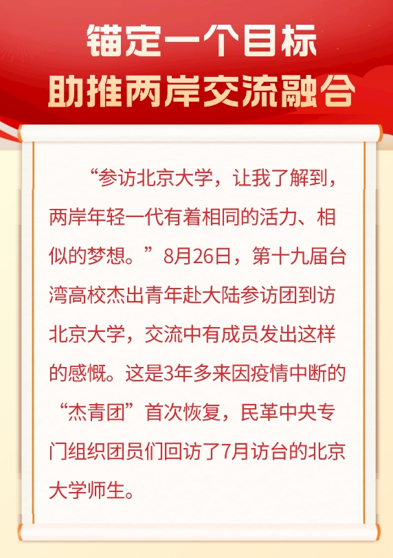 從線上重回線下,是今年民革中央很多對臺活動的顯著特征。許多經(jīng)年未見的朋友再次見面,交流的深度和頻次明顯增多了。以青年交流為例,通過邀請“杰青團(tuán)”和“臺灣勵志青年大陸參訪團(tuán)”來大陸參訪,舉辦臺青兩會觀、新青年工作坊、臺青之友沙龍等活動,臺灣青年對大陸政治經(jīng)濟(jì)社會發(fā)展情況的了解進(jìn)一步加深,特別是對中國新型政黨制度內(nèi)涵和優(yōu)勢逐步有了全面深入的理解。