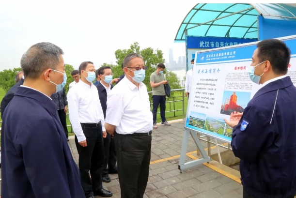5月26日,民革中央調(diào)研組在湖北省武漢市武昌江灘五期考察余家頭水廠取水口。