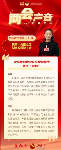 “近年來,我國(guó)促進(jìn)科技成果轉(zhuǎn)化法律及系列政策的逐步落實(shí),為高??萍汲晒D(zhuǎn)化提供了更加有力的法治保障,高??萍汲晒D(zhuǎn)化取得了顯著成效?!苯衲耆珖?guó)兩會(huì)上,長(zhǎng)期關(guān)注高??萍汲晒D(zhuǎn)化問題的全國(guó)政協(xié)委員、民革中央副主席、湖南省科協(xié)主席田紅旗再次就此提出建議,呼吁進(jìn)一步深化高??萍汲晒D(zhuǎn)化實(shí)施,推動(dòng)高校和企業(yè)在成果轉(zhuǎn)化中實(shí)現(xiàn)“雙贏”,提升協(xié)同創(chuàng)新整體效能。