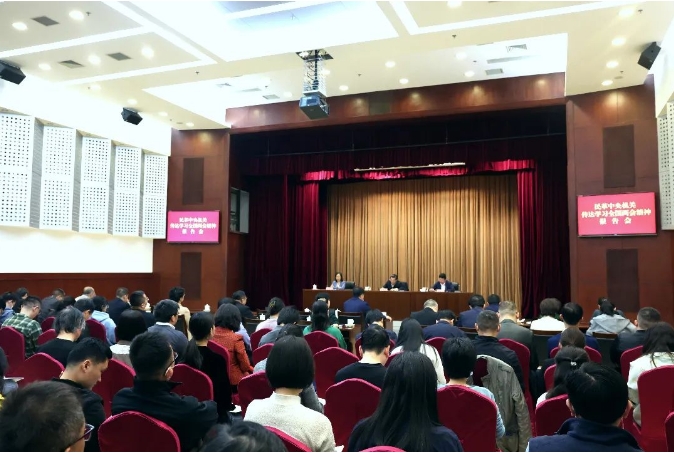 民革中央機(jī)關(guān)召開傳達(dá)學(xué)習(xí)全國(guó)兩會(huì)精神報(bào)告會(huì)現(xiàn)場(chǎng)。