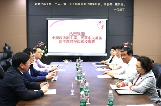 5月10日,全國(guó)政協(xié)副主席、民革中央常務(wù)副主席何報(bào)翔在京走訪民革黨員所在單位。圖為何報(bào)翔一行與清華大學(xué)方面座談。