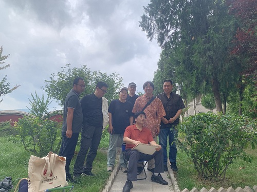 孔維克院長與甘肅書畫家王安民、臺(tái)灣書畫家胡九蟬等人在天水市玉泉觀采風(fēng)寫生