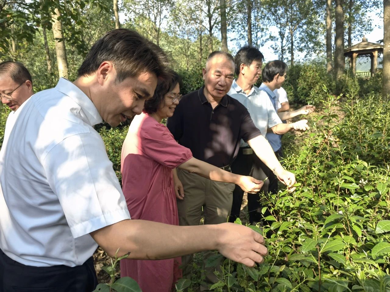 9月6日下午,民革浙江省委會(huì)“三農(nóng)”服務(wù)團(tuán)一行考察了大黃山有機(jī)茶基地和浙江芹陽茶業(yè)有限公司,實(shí)地了解該公司與杭州西湖龍井茶骨干企業(yè)聯(lián)盟主席單位御野茶業(yè)公司合作發(fā)展情況,參觀了大黃山茶博園茶葉油茶展示體驗(yàn)館、原生態(tài)有機(jī)茶園,親近“長在樹林里的茶葉”。