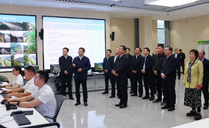 10月12日,調研組在丹江口水庫水質安全保障指揮中心調研庫區(qū)保水護水智慧監(jiān)管監(jiān)測平臺運行情況。