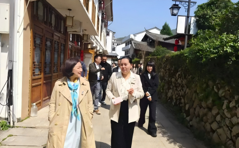 蔣勝男(左一)在溫州瑞安調(diào)研基層減負(fù)情況。
