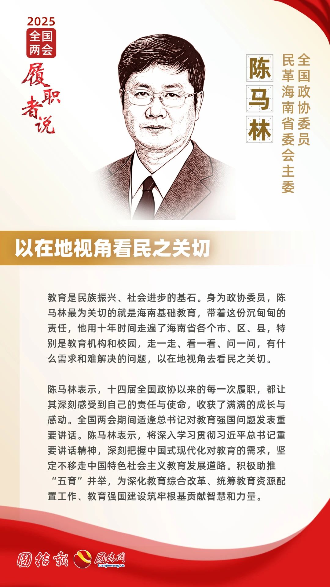 “我所提意見建議得到中共黨委、政府采納并逐步轉(zhuǎn)化為實(shí)際成效,得益于習(xí)近平新時(shí)代中國(guó)特色社會(huì)主義思想的指導(dǎo),特別是習(xí)近平總書記關(guān)于教育強(qiáng)國(guó)的重要論述。得益于政協(xié)組織給予的平臺(tái)與機(jī)會(huì),讓我能夠深入基層、傾聽民聲?!标愸R林向記者表示,十四屆全國(guó)政協(xié)以來(lái)的每一次履職,都讓其深刻感受到自己的責(zé)任與使命,收獲了滿滿的成長(zhǎng)與感動(dòng)?!笆陿淠?,百年樹人。海南省基礎(chǔ)教育改革并非一朝一夕,需要久久為功?!?/p>