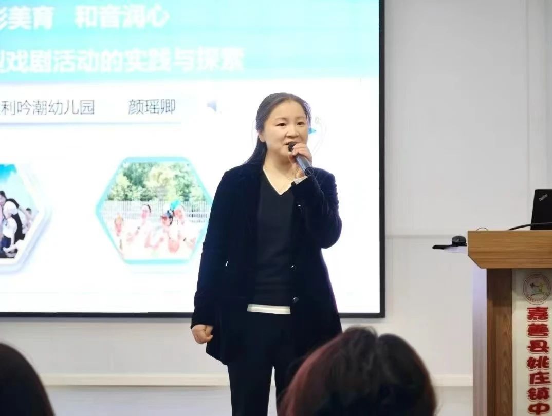 隨后,省政協(xié)委員、民革浙江省委會(huì)教育服務(wù)團(tuán)副團(tuán)長(zhǎng)、杭州市勝利吟潮幼兒園名師工作室?guī)ь^人顏瑤卿開(kāi)展了《多彩美育 和音潤(rùn)心——幼兒園微型戲劇活動(dòng)的實(shí)踐和探索》專題講座,結(jié)合其原創(chuàng)韻律教學(xué)體系構(gòu)建經(jīng)驗(yàn),系統(tǒng)解析當(dāng)前學(xué)前教育發(fā)展趨勢(shì),通過(guò)展示全國(guó)獲獎(jiǎng)教學(xué)案例視頻,深入淺出地闡釋了游戲化教學(xué)、師幼互動(dòng)質(zhì)量提升等關(guān)鍵要素,重點(diǎn)分享了“多彩生命教育”實(shí)踐成果,為鄉(xiāng)村幼兒園課程建設(shè)提供了新思路。
