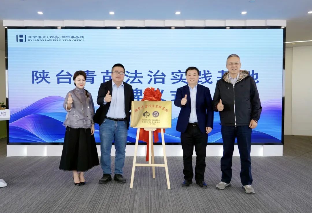 崔彬、晏立群、劉潔、陳長風(fēng)共同為陜臺(tái)青苗法治實(shí)踐基地揭牌。