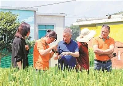 民革農(nóng)技專家指導(dǎo)納雍農(nóng)戶小站稻種植。民革中央社會服務(wù)部供圖