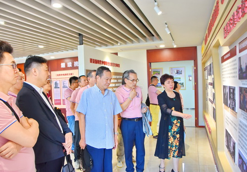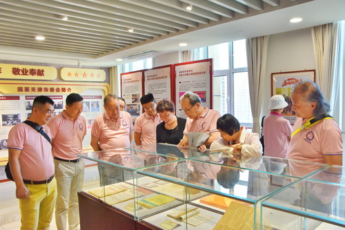 林際平一行參觀了民革歷史陳列室,周潮洪對孫中山愛國、革命、不斷進步精神,孫中山先生的三次天津之行,民革中央名譽主席宋慶齡,民革中央歷任主席及與黃埔軍校淵源,民革歷史,陳列柜文物,懸掛照片和書法等版塊進行講解。